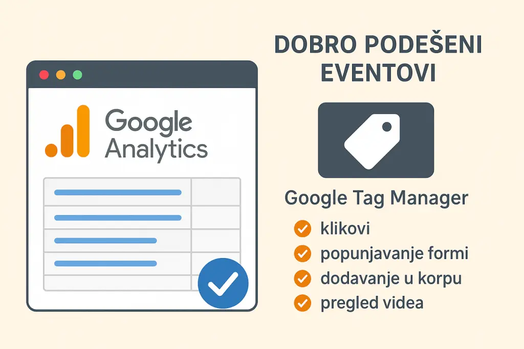 Dobro podešeni eventovi u Google Analytics-u (GA4) i Google Tag Manager-u (GTM) potpuno menjaju način na koji se meri uspeh digitalnih kampanja. Umesto da se uspeh zasniva samo na klasičnim metrikama (posete, pregledi stranica, odbijanja…), event-based merenje omogućava precizno praćenje ponašanja korisnika…